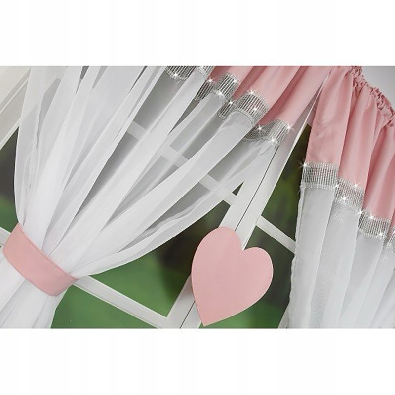 Voálová záclonka s motivem srdce a třpytivými kamínky, která dodá interiéru lesk a výjimečný půvab. Lehká, dekorativní a efektní na velkém okně - ideální do ložnice, obýváku i dětského pokoje.