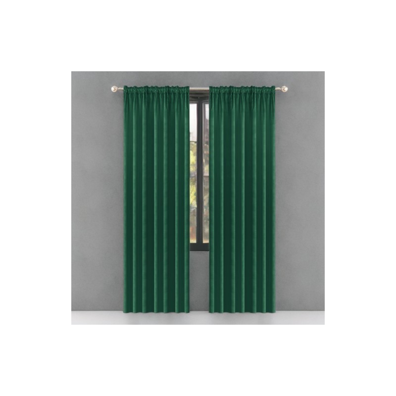 Stylový zatemňující velurový závěs v barvě lahvově zelené 140 x 250 cm s řasicí páskou, který dodá interiéru eleganci, soukromí a výraznou dekoraci okna.